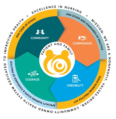 Professional Practice ModelRecognizing the complexity and unpredictable nature of the work of nursing, Memorial Hermann’s System Magnet Collaborative Council developed a systemwide Professional Practice Model (PPM). This model, which defines how nurses at Memorial Hermann practice, collaborate, communicate and develop professionally, is based on four core values: