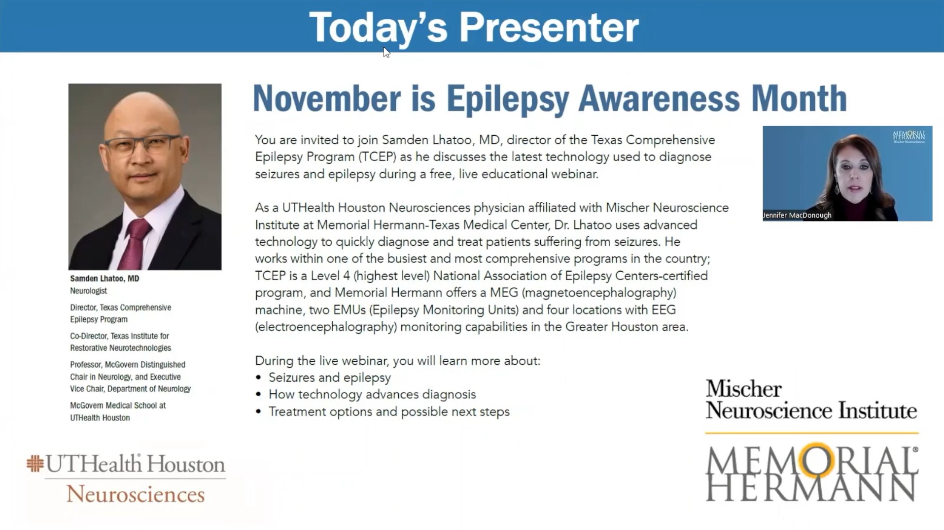 Memorial Hermann Mischer Neurosciences and its affiliated physicians provide free educational online presentations covering neurological conditions affecting the brain, spine and nerves. Click the links below to view recordings of past webinars to learn from our top specialists as they dive into the latest treatment advancements and more.